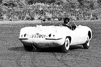 I made several plans for the interior of the car but only two got carried out. An urgent one was to seal the back of the hood storage area behind the seats to stop road water coming in. Possibly road cars have this sealed already but on my car there was a gap at the back, so I made cardboard inserts and covered them with PVC and there were no more muddy jackets. The other job was to place the instruments in front of the driver. I cut holes in the dash for the Tach and Speedo and made a panel in wood covered in black vinyl for the four small instruments and the ignition/lamp switch below the wheel. I had added an oil temperature gauge when the crank broke and the other gauges were fuel, ammeter and oil pressure / water temperature. The looms and pipes just stretched to their new position and I fixed a lined PVC sheet into the vacated dash cavity for gloves. Minor jobs included repairing the driver’s fragile fibreglass bucket seat and reclining it on a board raised 5½” at the front, fitting reversing lamps and a pair of racing mirrors, painting the bodywork inside the windscreen matt black and adding bits of rubber to the doors, bonnet and boot to stop them rattling (which added 10 mph to my country speed).