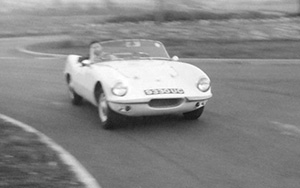 One very wet night in November ’65, upset over a girl, I was driving too fast with the spare Michelin X on and the car aquaplaned through one of the fast bends, but I checked it easily so later on floored the throttle in third and crunched off a wall on opposite lock. It was a classic bad car, bad driver, bad weather incident. I wasn’t far from ByC so I collected up the bits of fibreglass and was sufficiently unfazed to volunteer to ferry Roger and his girl Evelyn back to Bangor in the pouring rain (no weather for a bike), changing gear right-handed as it was so cramped! There was no chassis damage but the bodywork was missing from the air intake to the wheel arch on the driver’s side.