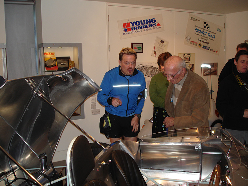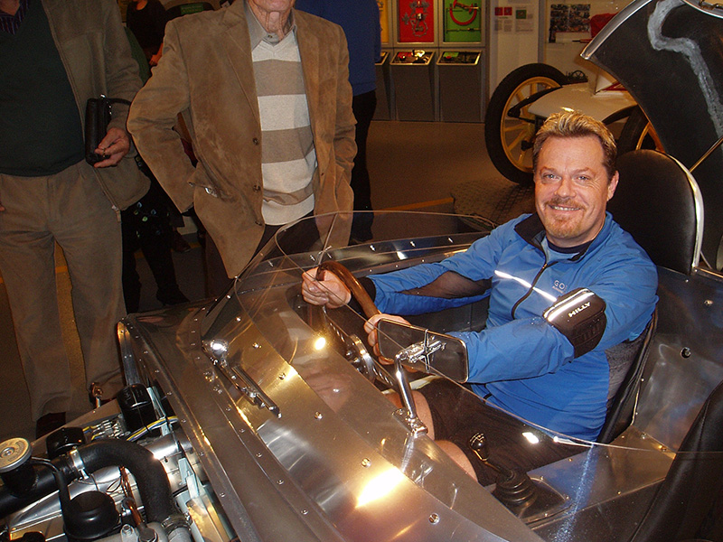 26 November 2009. Opened by Eddie Izzard. While the Elva-Climax Mk.III had been on display for several weeks, the official opening of the enlarged and renovated museum took place on Thursday 26th November 2009 with the ceremony of cutting the ribbon performed by actor and comedian Eddie Izzard. Amazingly, Eddie ran from Eastbourne to Bexhill (around 12 miles), which for him was a mere stroll as he has run over 40 (yes FORTY) marathon races during 2009 on behalf of Comic Relief. The museum was jam packed and after speeches Eddie explored the various displays before making a beeline for the Elva. He genuinely expressed huge interest having spent much of his childhood in Bexhill and of course wanted to get behind the wheel! Len Sayers encouraged Eddie into the cockpit and there was lots of banter and pictures taken as Eddie asked about the car and Elva in general. Needless to say he was delighted to sign our very special team ‘keepsakes’ and eventually we all headed home having imbibed a bottle or two of “Elva Ale” in celebration of a great ‘ELVA’ effort by all concerned. There is no doubt that the display has attracted much attention and will remind future generations of all that was achieved by Elva from the very earliest days in Bexhill. As museum CEO Peter Fairhurst wrote... Three unique vehicles are sitting proudly on their plinths in the new ‘Motoring’ gallery; the replica 1902 Serpollet, steam powered car, the 1993 Volta battery powered record breaking electric car and, as visitors enter the gallery, directly in front of them they see the ELVA. It is interesting to stand out of sight when people enter and hear their remarks, the most common of which is a single ‘WOW’. Describing the car in a few words would be impossible; it could be described as ‘stunningly beautiful’ but that would not do justice to the hard work, skill and craftsmanship that turned the run-down and derelict wreck that arrived at Dallington, in 2007, into the glittering, totally refurbished sports/racing car that causes grown men to utter the afore-mentioned ‘WOW’. If the museum can now arrange for the collection of 50p for each time people say “WOW” they will make a fortune! Better still, make time to visit Bexhill and of course the museum, but do make sure you have a 50p coin in your pocket!. Click to view a photo/slideshow.Photos by Roger Dunbar and Robin Thatcher And here's some other links to the story... |